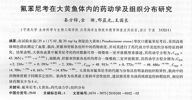 氟苯尼考在大黃魚(yú)體內(nèi)的藥動(dòng)學(xué)及組織分布研究