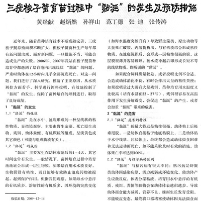 三疣梭子蟹魚(yú)苗過(guò)程中“黏涎”的發(fā)生及預(yù)防措施1