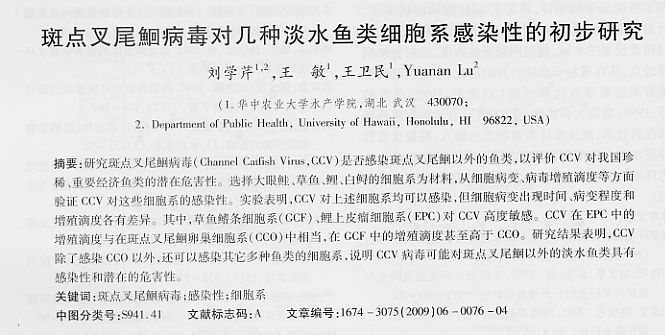 斑點叉尾鮰病毒對幾種淡水魚類細胞系感染性的初步研究