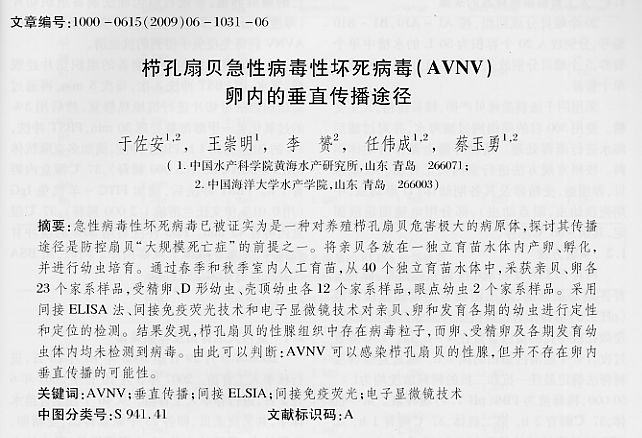 櫛孔扇貝急性病毒性壞死病毒(AVNV)卵內(nèi)的垂直傳播途徑