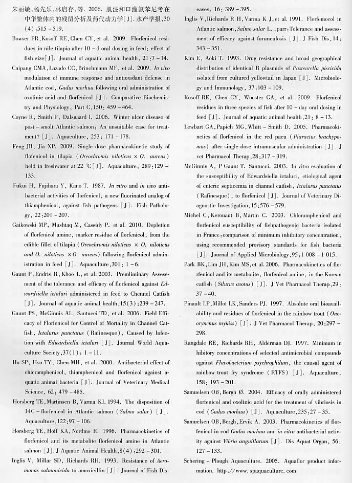 氟苯尼考的藥效學及其在水產(chǎn)動物中的代謝動力學研究進展5