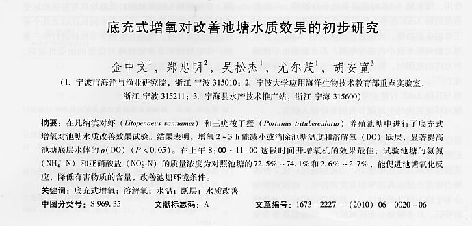 底充式增氧對改善池塘水質(zhì)效果的初步研究
