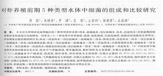 對蝦養(yǎng)殖前期5種類型水體中細菌的組成和比較研究