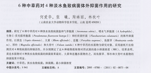 6種中草藥對(duì)4種淡水魚致病菌體外抑菌作用的研究