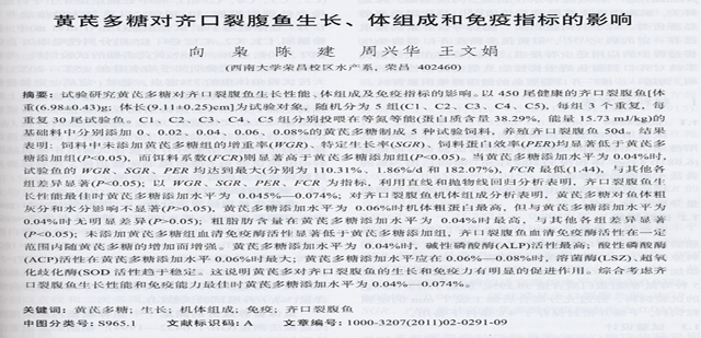 黃芪多糖對齊口裂腹魚生長、體組成和免疫指標的影響