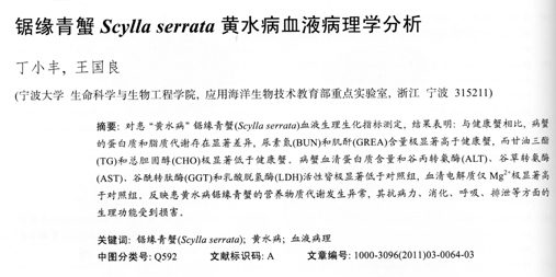 鋸緣青蟹Scyllaserrata黃水病血液病理學(xué)分析