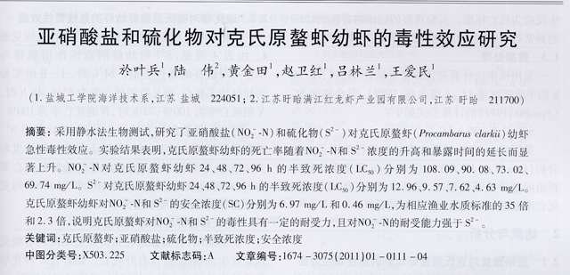 亞硝酸鹽和硫化物對(duì)克氏原螯蝦幼蝦的毒性效應(yīng)研究