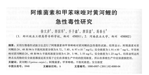 阿維菌素和甲苯咪唑?qū)S河鯉的急性毒性研究
