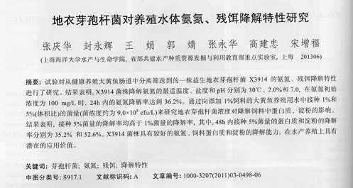 地衣芽孢桿菌對(duì)養(yǎng)殖水體氨氮、殘餌降解特性研究