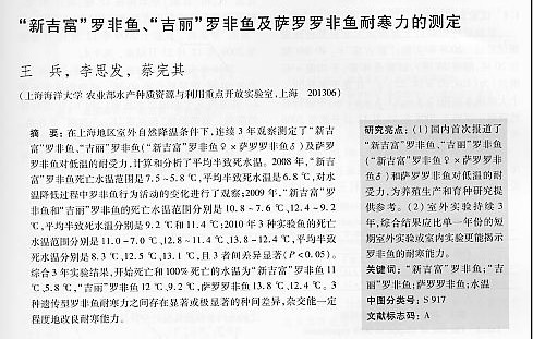 “新吉富”羅非魚、“吉麗”羅非魚及薩羅羅非魚耐寒力的測定