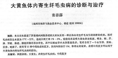 大黃魚體內(nèi)寄生纖毛蟲病的診斷治療