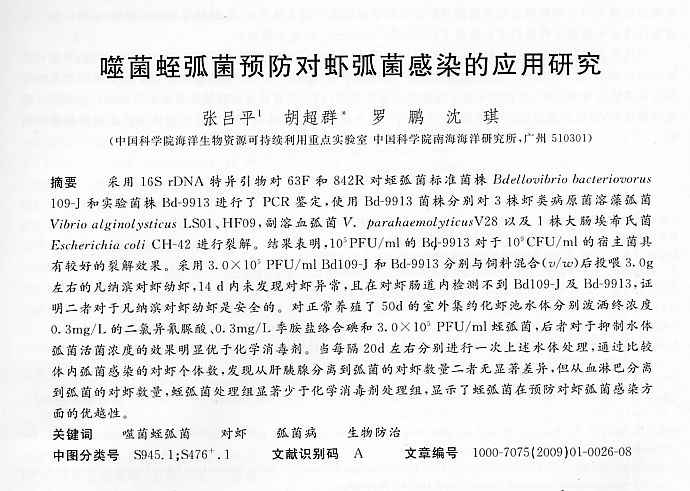噬菌蛭弧菌預(yù)防對蝦弧菌感染的應(yīng)用研究