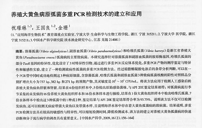 養(yǎng)殖大黃魚病原弧菌多重PCR檢測技術的建立和應用